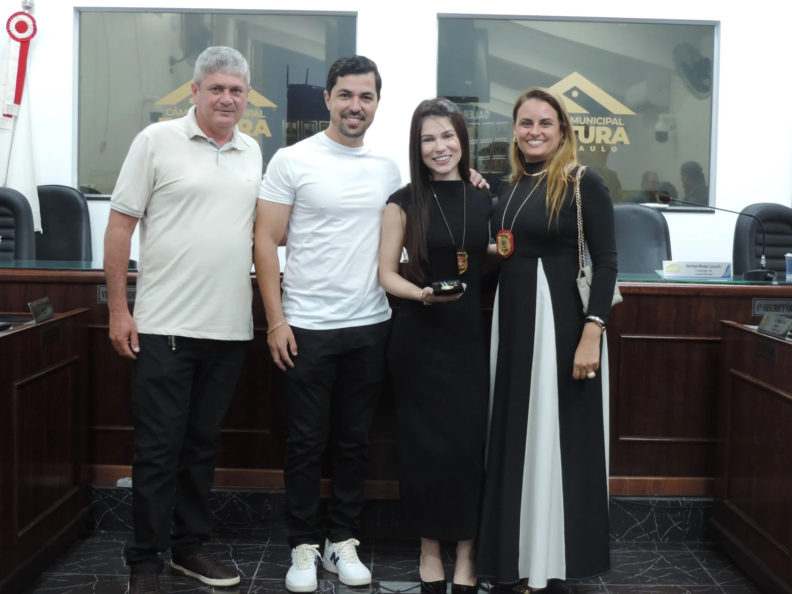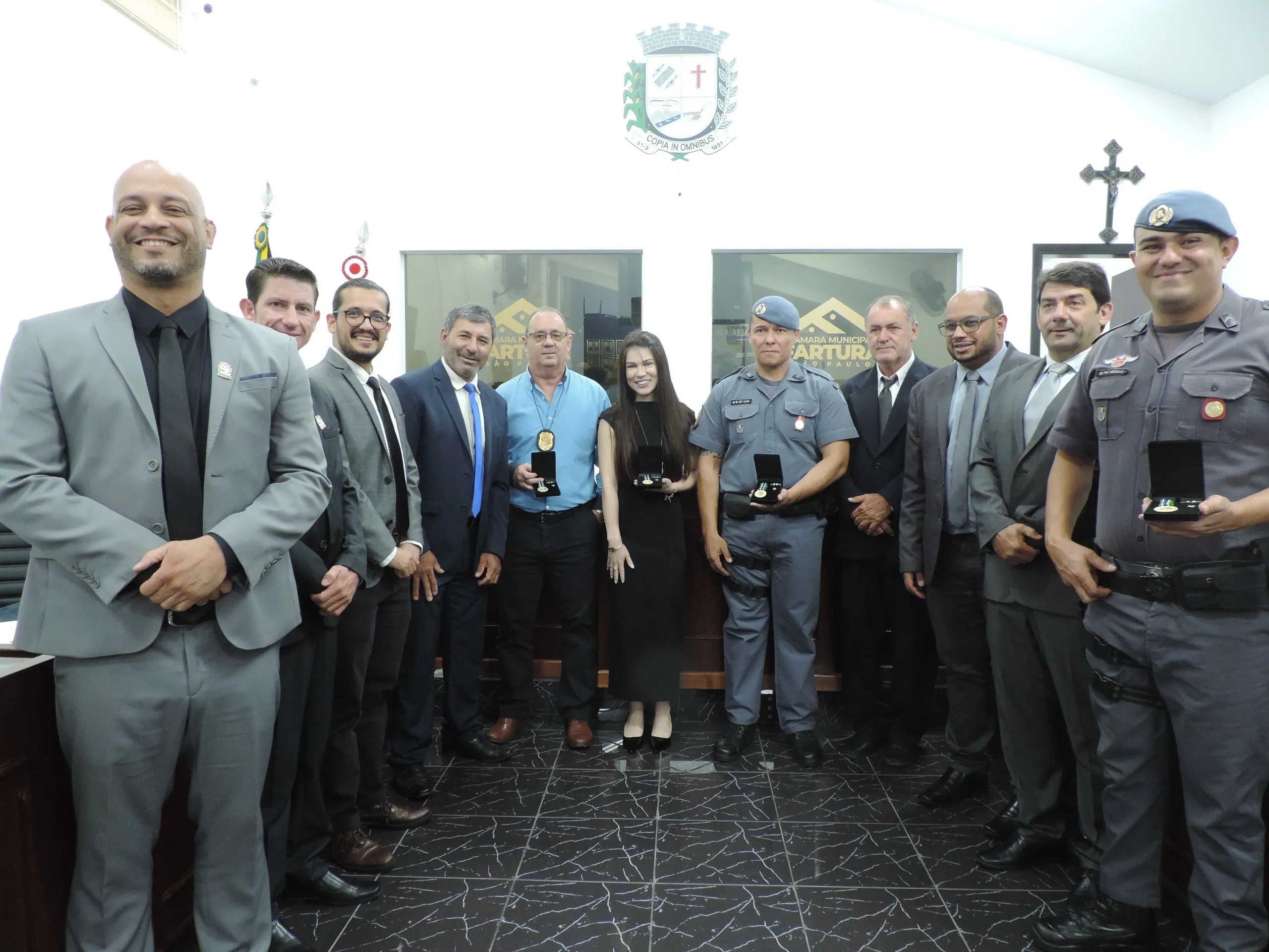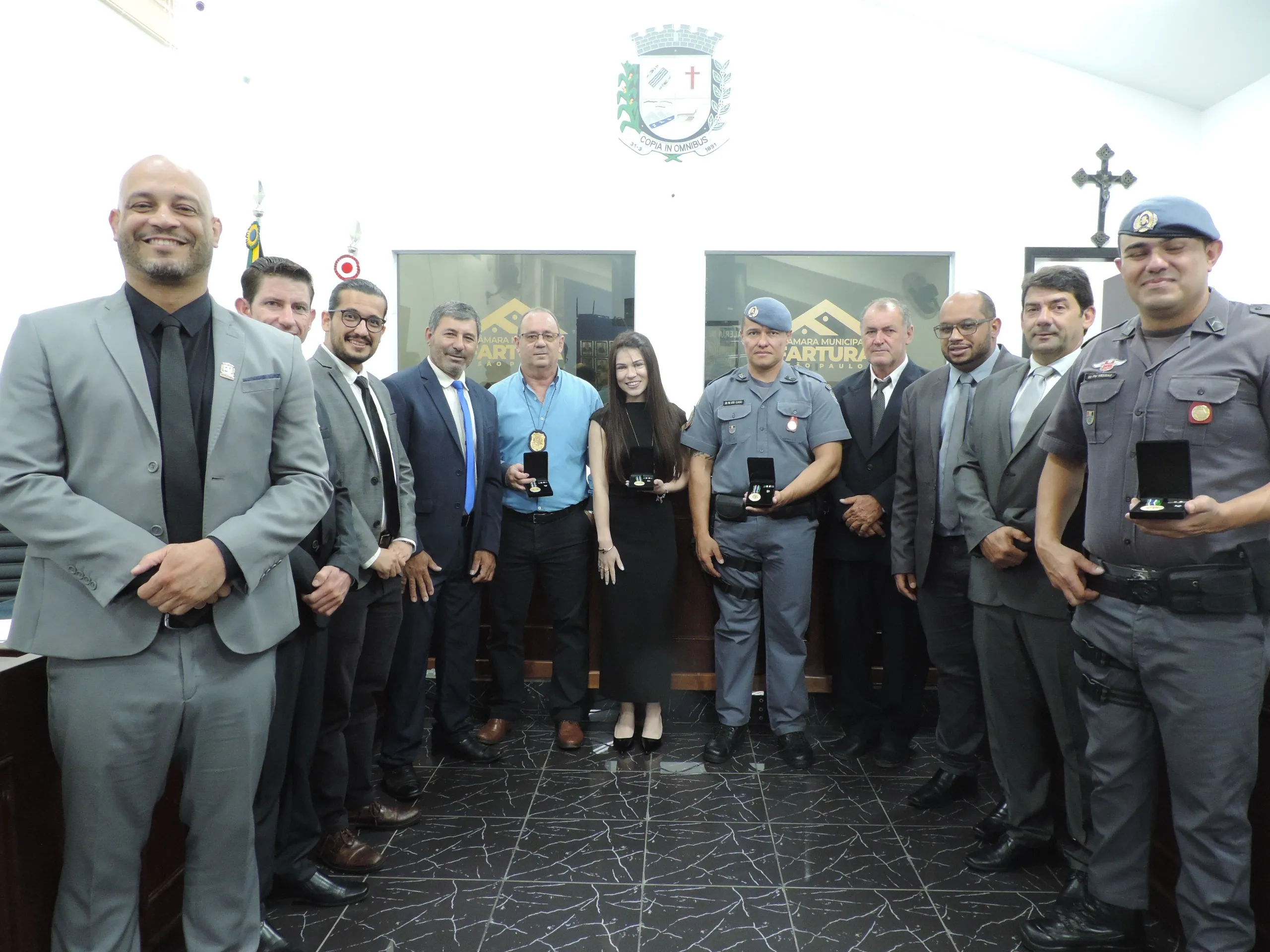 Entrega da Medalha de Reconhecimento Comunitário de Segurança a policiais militares e civis que se destacaram no último ano. Evento realizado em 11/03/2026, às 19h30.